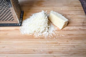 Parmesan bringt Würze und Bindung ins Spinat Pesto. Es gibt aber gute Alternativen, je nach Geschmack oder Vorrat.