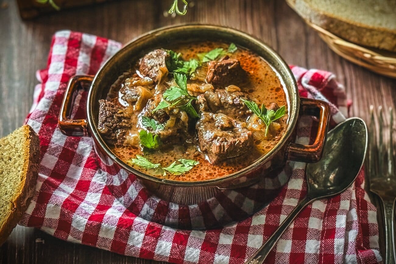 Lammgulasch Rezept mit zartem Fleisch und feiner Soße. Kein Hammelgeschmack! Perfekt für Weihnachten oder Ostern.