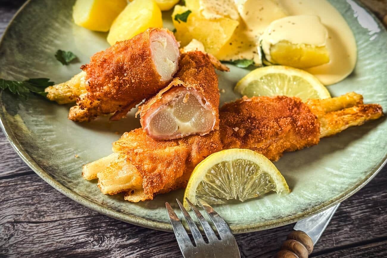Das Spargel-Cordon-Bleu Rezept ist schnell umgesetzt. Es passt im Frühling als Abendessen für die Familie aber auch für Festivitäten.