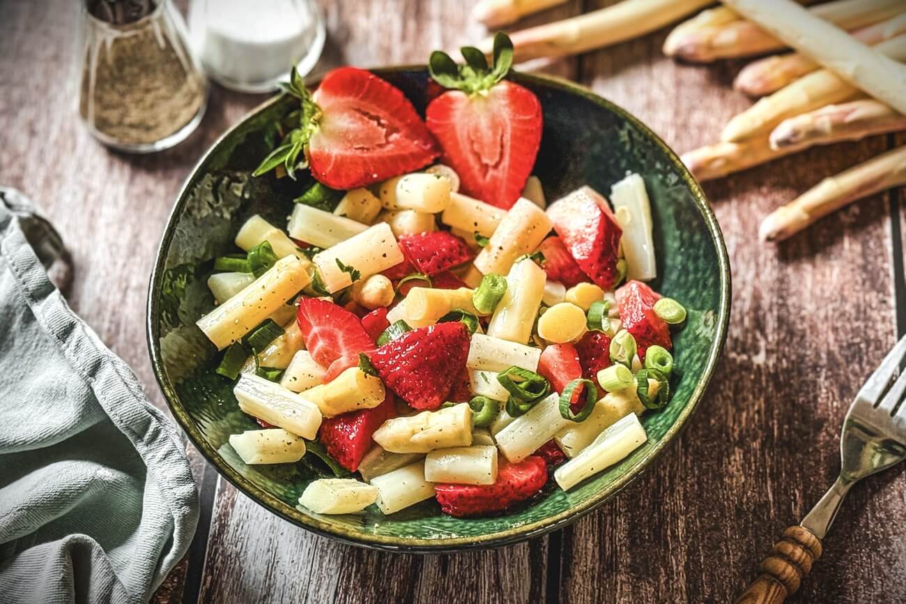 Dieser Spargelsalat mit Erdbeeren ist überaus erfrischend, sättigend und genau das Richtige, wenn’s im Frühjahr langsam heiß wird…
