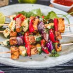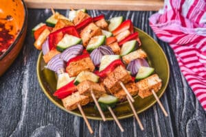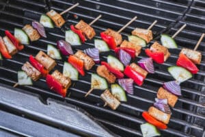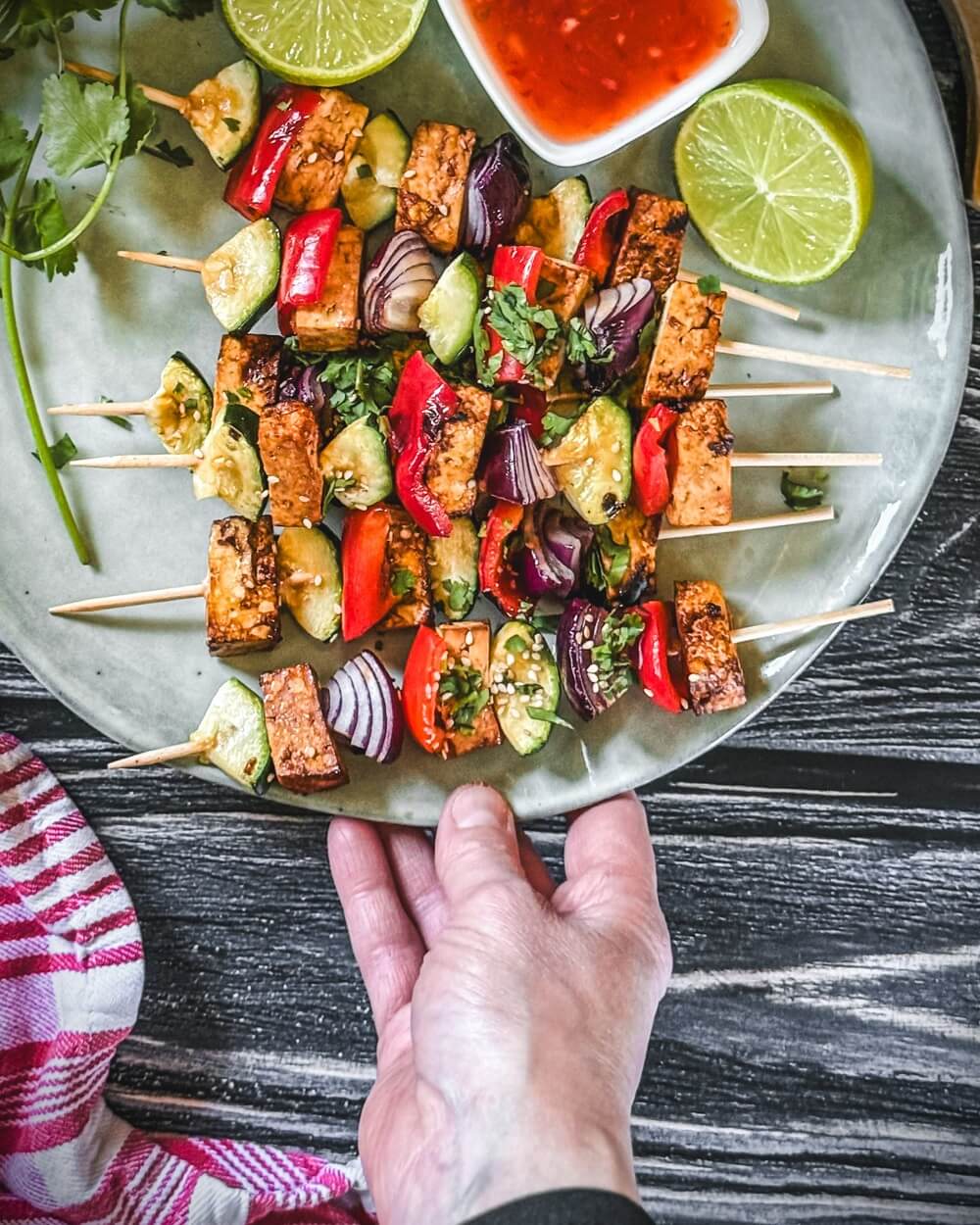 Darum: Mit der richtigen Tofu Marinade und in Kombination mit Gemüse auf Spießen entsteht über der Glut ein gegrillter Tofu, der für Abwechslung sorgt.