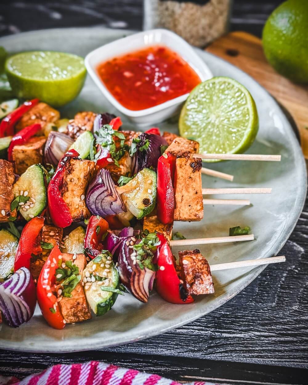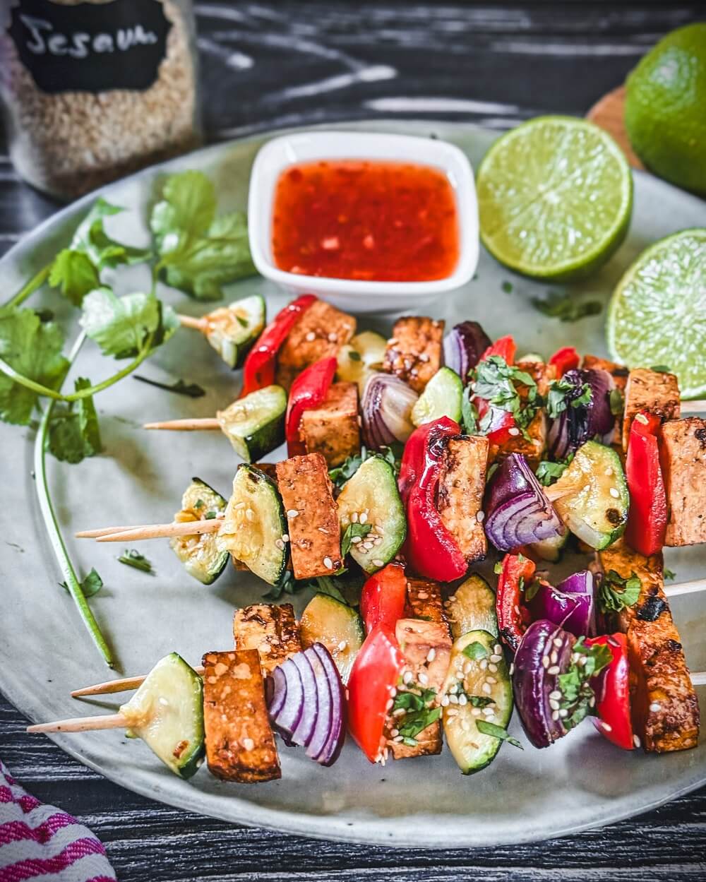 Tofu kombiniert sich gut mit Gemüse, Reis, Nudeln oder Salaten. Auch auf dem Grill funktioniert er zusammen mit Paprika, Zucchini oder Zwiebeln sehr gut. Checkt auch gerne meine Kategorien Dips sowie Grillsaucen aus - da findet ihr passende Begleiter für die marinierten Tofu Grillspieße.