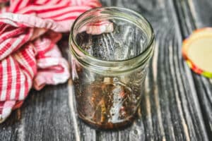 - Alle Zutaten für die Marinade in ein Glas oder eine Schüssel geben, den Knoblauch pressen und alles gründlich vermengen.
